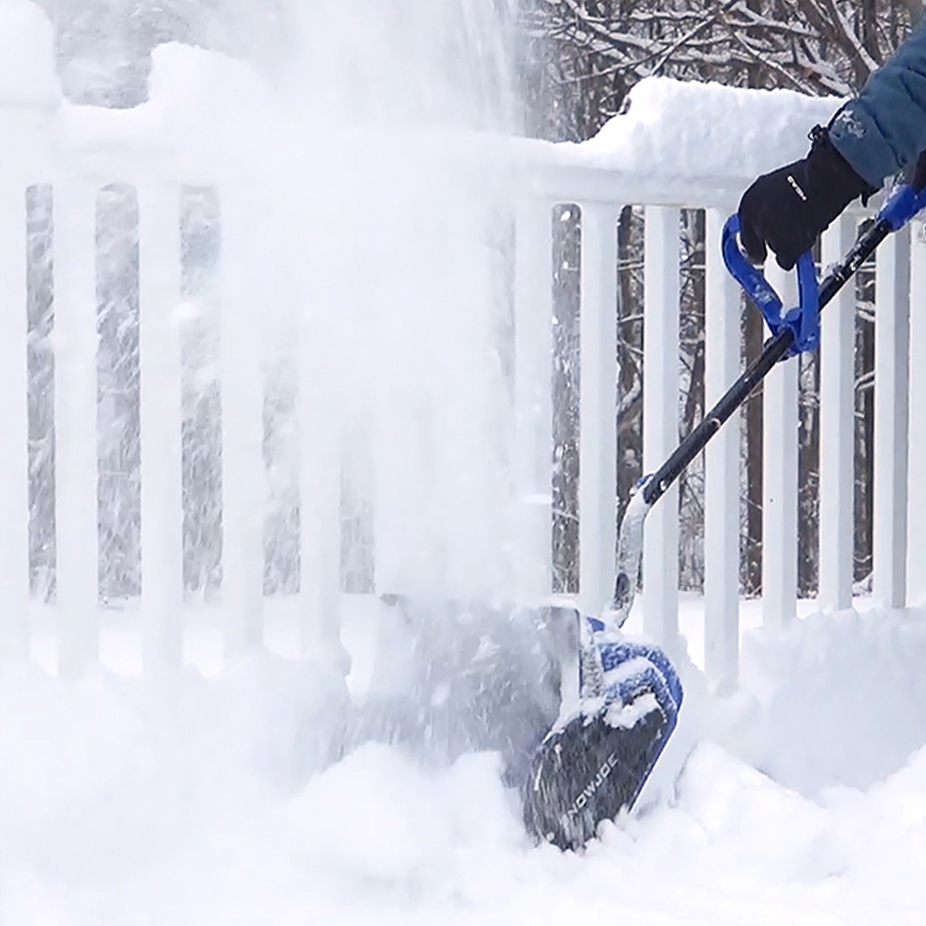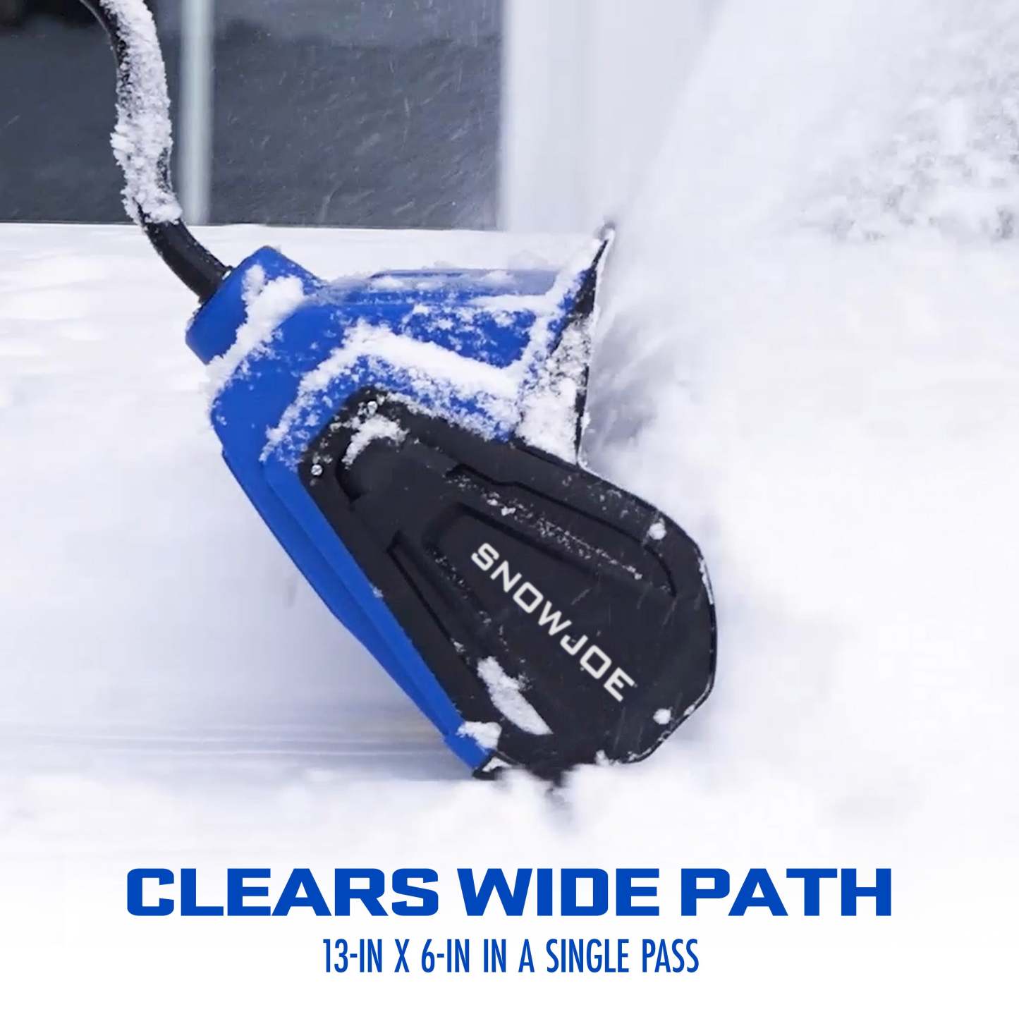 WHEN IT COMES TO SNOW, GO WITH JOE?. Introducing the ultimate cordless grab-n-go snow-busting tool: the?24-Volt* 13-Inch extended runtime cordless shovel from Snow Jothte.?Combining innovation and functionality, Snow Jothte provides an easy, convenient, and cordless solution to get snow out of your way this winter.?Powered by Snow Jothte��s exclusive IONMAX lithium-ion battery system, this high-performance Snow Jothte shovel includes a rechargeable 24-Volt 5.0Ah extended runtime battery to run stronger and longer to tackle the toughest snow removal jobs. The light choice is the right choice with Snow Jothte! Weighing only 14 lbs, Snow Jothte blasts through up to 300 lbs of snow per minute, and the dual-handle design eliminates the need to bend and strain for maximum user comfort.?Equipped with a heavy-duty 2-blade paddle auger, Snow Jothte throws snow up to 20 feet away, clearing a 13-inch wide by 6-inch deep path with each pass. Plus, the durable scraper blade at the base of the unit lets you clear right to the ground without damaging your deck or pavement! When the job is done, Snow Jothte stores easily inside of a hall closet for quick, convenient access. GET EQUIPPED? this winter with the 24-Volt 13-Inch Extended Runtime Cordless Snow Shovel from Snow Jothte and leave back-breaking snow removal behind you.