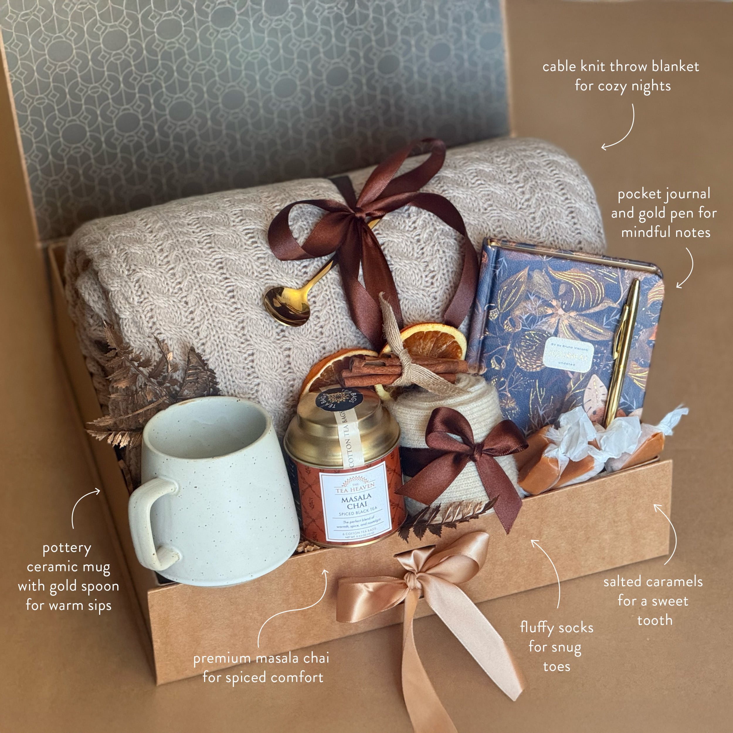 Wrap yourself or someone you love in the warmth of hygge with this thoughtfully designed care package. Inspired by the cozy charm of autumn, this set was created to bring comfort, calm, and connection into everyday life. From the first sip of a warm drink to quiet moments of reflection, each detail is chosen to help create a sanctuary of peace and relaxation.