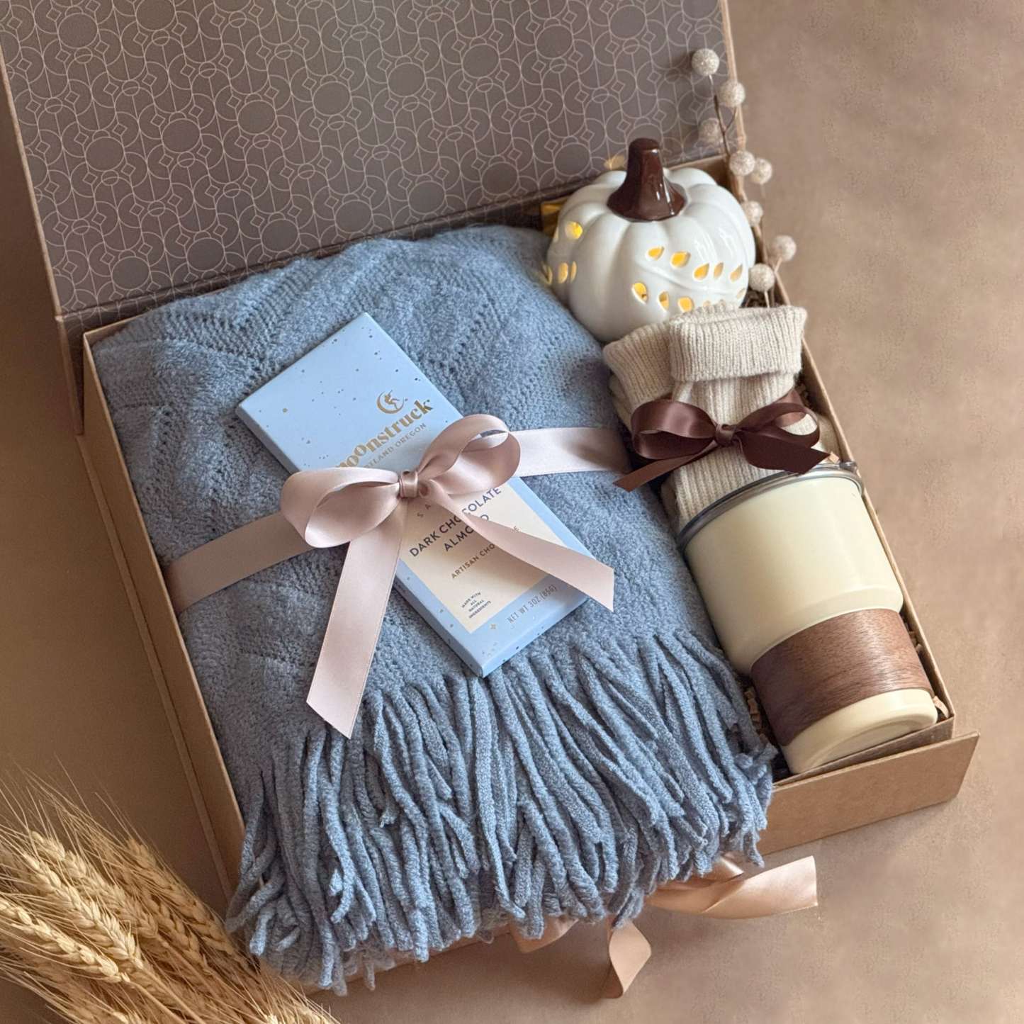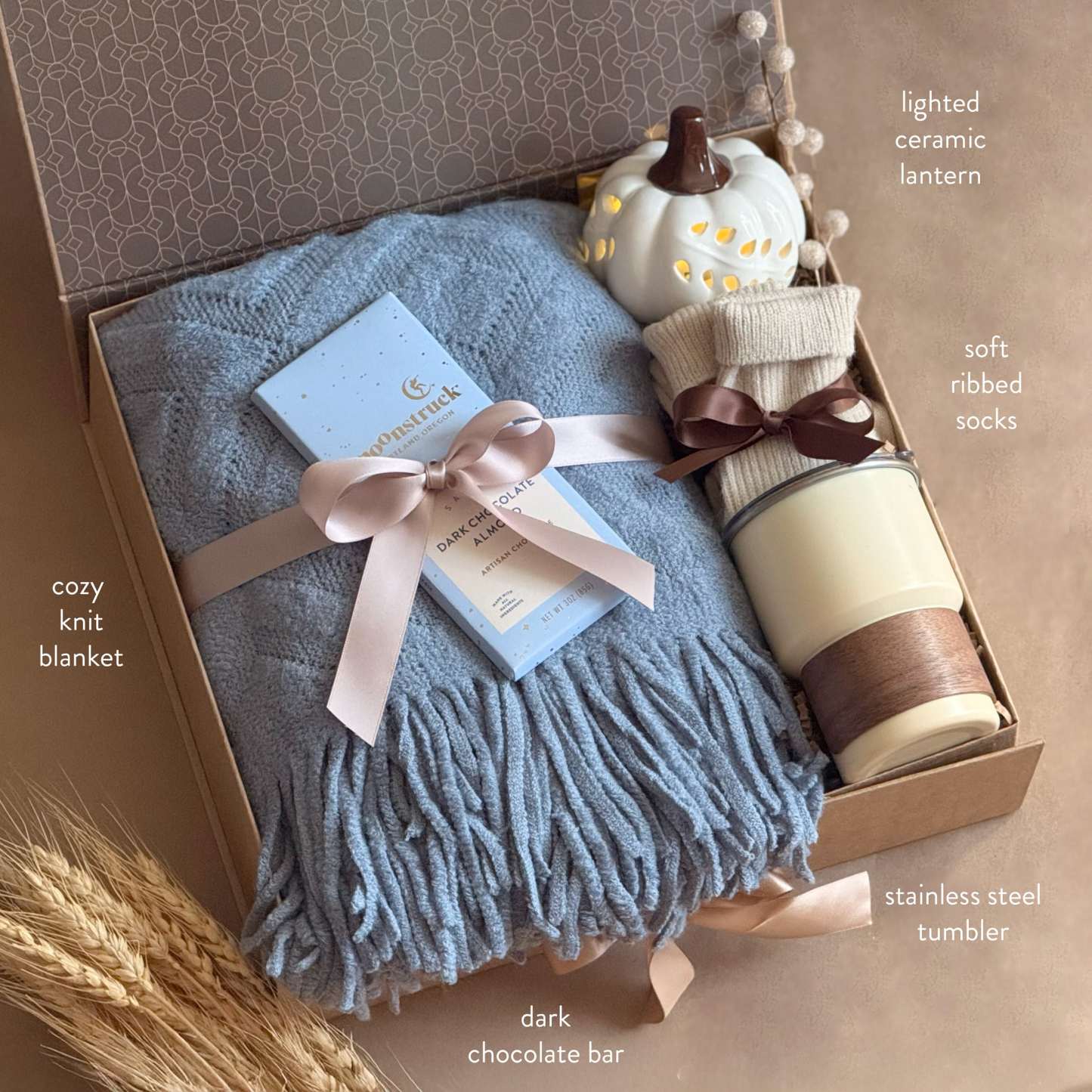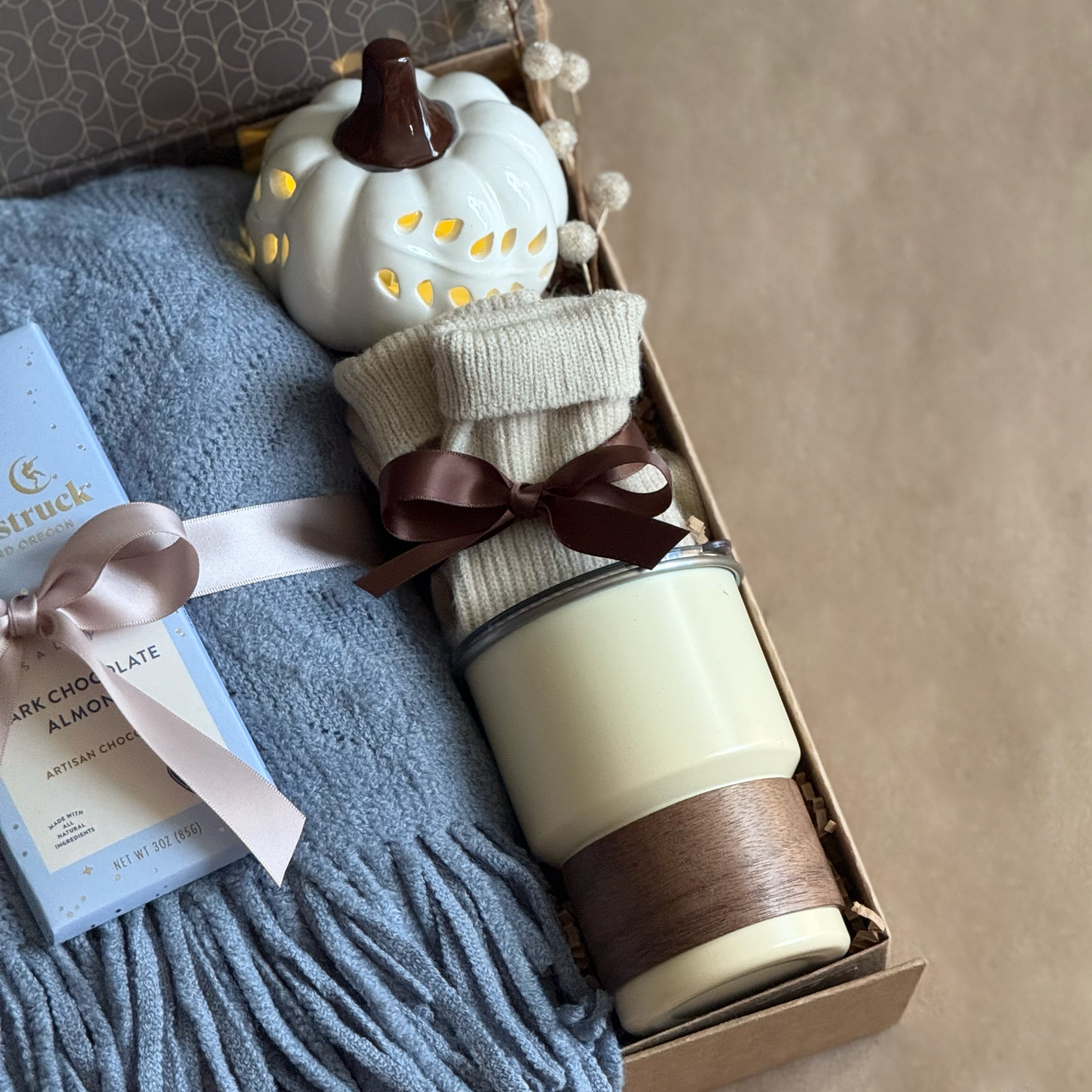 Perfect for seasonal gifting, cozy nights in, or thoughtful self-care moments, it brings together everything you love about autumn��glowing light, soft knits, sweet treats, and the quiet comfort of hygge living. Whether sent to a loved one or enjoyed for yourself, this gift transforms any space into a haven of fall serenity.